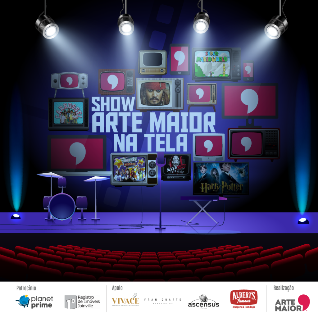 O Show “Arte Maior na Tela” surgiu com o objetivo de criar um repertório que estivesse mais próximo ao cotidiano dos alunos. Desta forma, pensamos em “telas”, o quê seria mais atual do que as telas? Nossos alunos estão sempre ligados, conectados e plugados na tela, seja no celular, computador, televisão ou cinema…